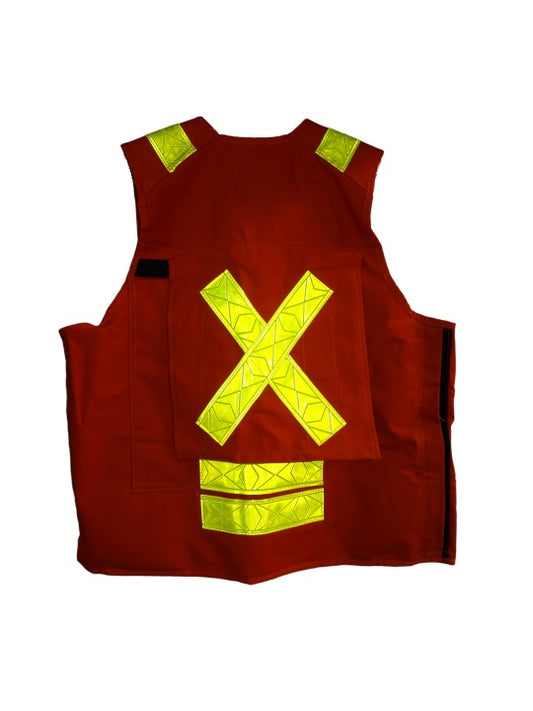 Deluxe 14 Pocket Cruiser Vest- Red Cotton with Reflective Striping