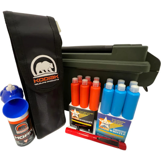 Kodiak Water Resistant Professional Hard Shell Bear Safety Kit (Bear Spray, 6 bangers, 6 flares, launcher, air horn, holster, hard waterproof case)