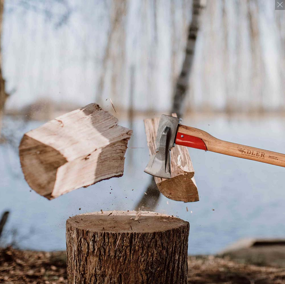 Axe and splitting wedge combined in one tool. The Long Splitter let’s you easily split medium sized and large pieces of wood. The “wings” on the side of the axe head are designed to separate the wood effectively so that it will not be brought back up when the user is pulling the axe up for the next strike. This item is delivered with a leather sheath which is made in Lithuania.