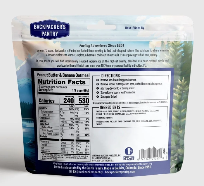 Backpacker's Pantry - Peanut Butter & Banana Oatmeal