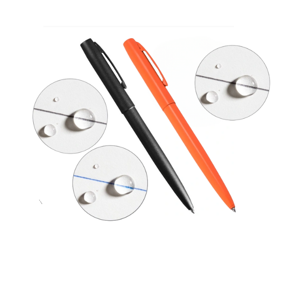 Proprietary ink and delivery system used exclusively in Rite in the Rain Pens will write without skipping in extremely wet conditions.