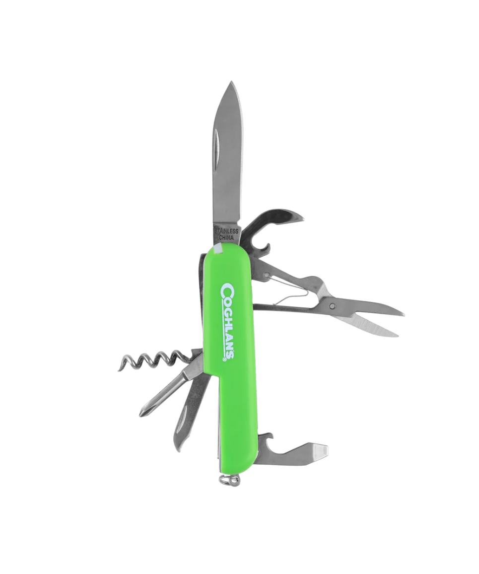 Coghlan's Camp Knife is the ultimate multi-functional tool for any outdoor enthusiast. With 11 essential tools, including a knife blade, can opener, scissors, saw, nail file, fish scaler, awl, corkscrew, screwdriver, bottle opener, toothpick, and tweezers, this knife has got you covered for any situation. The compact size and nesting tools make it easy to carry and use, and the knife fits comfortably in your hand. Whether you're camping or exploring the great outdoors, Coghlan's Camp Knife is the perfect companion for any adventure.