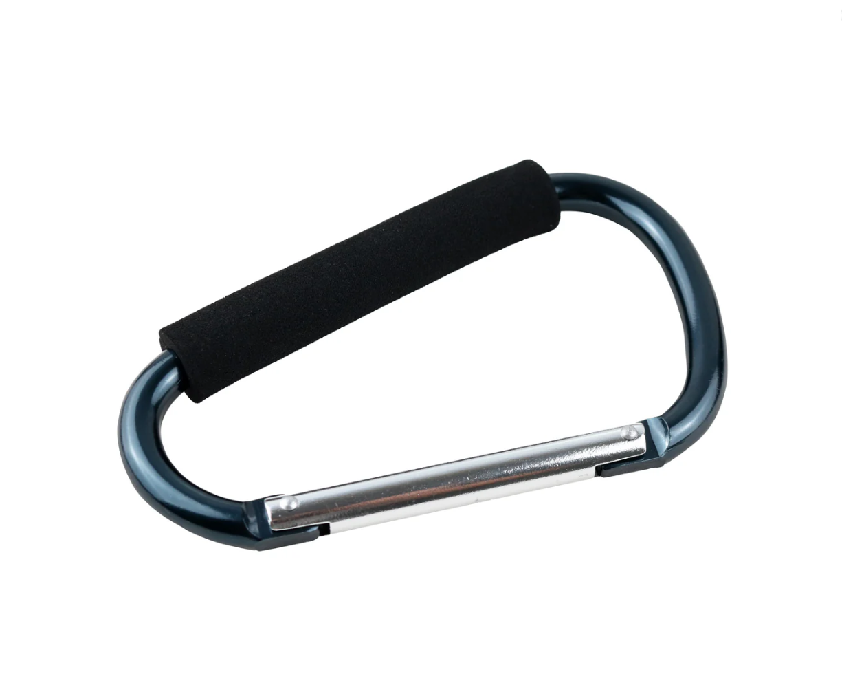 Coghlan's Large Carabiner Handle is a heavy-duty aluminum carabiner with a comfortable foam handle wrap that can support up to 100 lbs. It features an extra-wide 3-inch gate for easy loading and is perfect for clipping together multiple items such as grocery bags, totes, and camping gear for transport. The handle reduces strain on your hands, making carrying items easier. The carabiner's strength and convenience make it an essential tool for outdoor enthusiasts who want to carry more items in one trip.