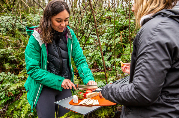 - Compact, stainless steel blades are perfectly rockered for kitchen prep and any other camp use