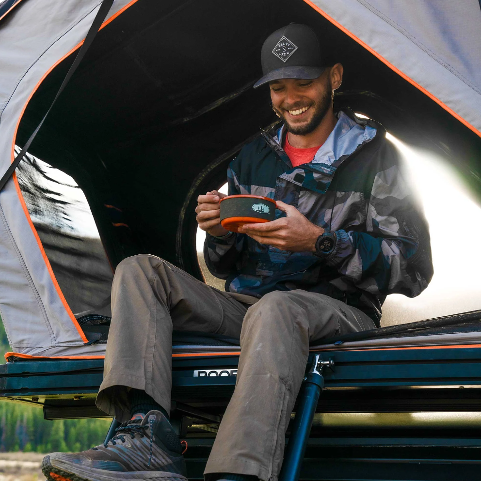 - Unique Nesting Bowl + Mug solution with low center of gravity and Sip-It lid virtually eliminate spills while the insulating sleeve keeps drinks hot