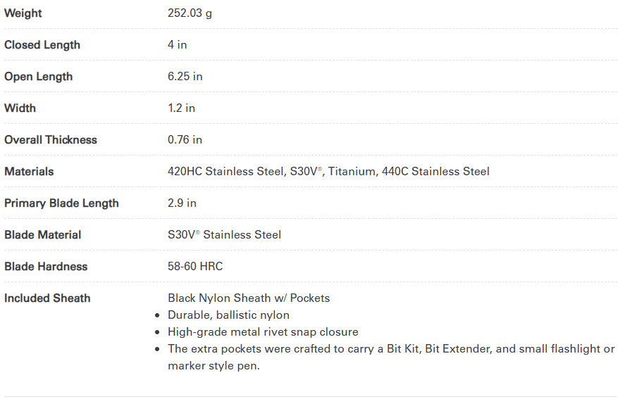 One of our more popular tools, the Charge Plus TTi is ready for jobs big and small. This practical multi-tool combines some of our most requested features with premium materials and upgraded, replaceable wire cutters. Titanium handles make the tool strong and an ultra-sharp S30V steel knife blade resists corrosion. Includes removable pocket clip.