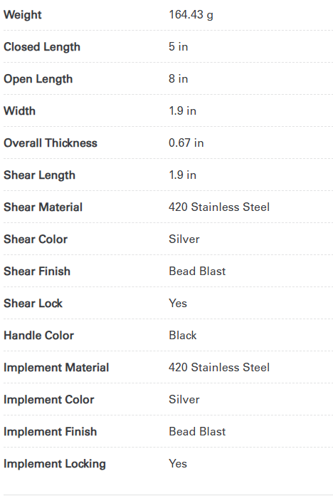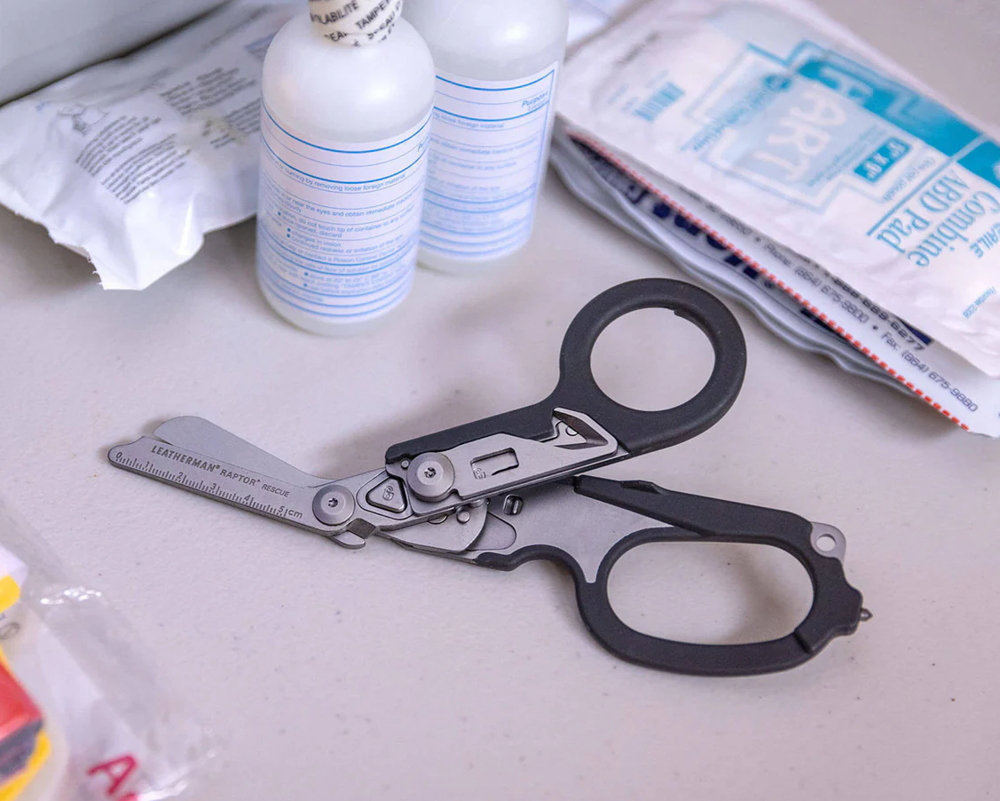 The Leatherman Raptor shears features the necessary tools for uniformed response professionals to safely and quickly go to work in an emergency situation. Developed with the input of special operations medics, EMTs and fire professionals familiar with standard shears, the Raptor shears were crafted with just the right balance of multipurpose features for emergency response without an overkill of tools to complicate sometimes life-threatening situations. When it's a question of survival, the Raptor answers loud and clear. Holster included. Commonly used as: emergency response shears, industrial shears, fabric shears, kitchen shears, garden shears.