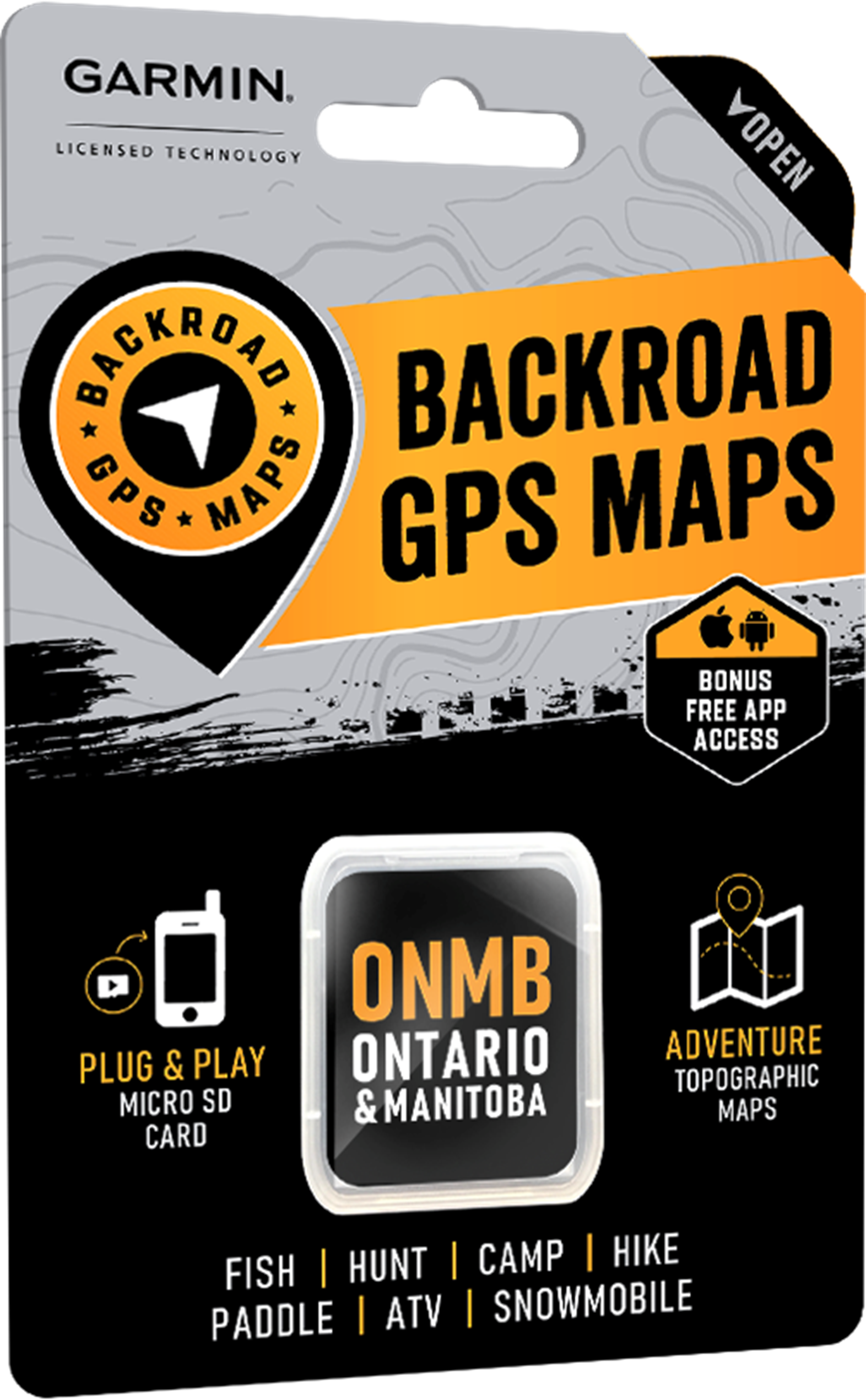 Backroad Mapbooksā Garmin-licensed Ontario & Manitoba GPS Maps are the most detailed, comprehensive and up-to-date recreation GPS maps available on the market. These are the maps of choice for serious outdoor explorers, with 3D views, shaded relief and countless geographic and activity based points-of-interest. Compatible with Garmin GPS and Garmin Basecamp, BRMBās Ontario & Manitoba GPS Maps come in Micro SD format and are easy to install and use, bringing the height of cartographic sophistication and outdoor recreation information directly to your GPS device or computer.