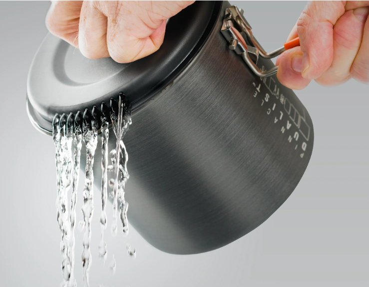 - Welded stuff sack holds the set and doubles as a sink or wash basin