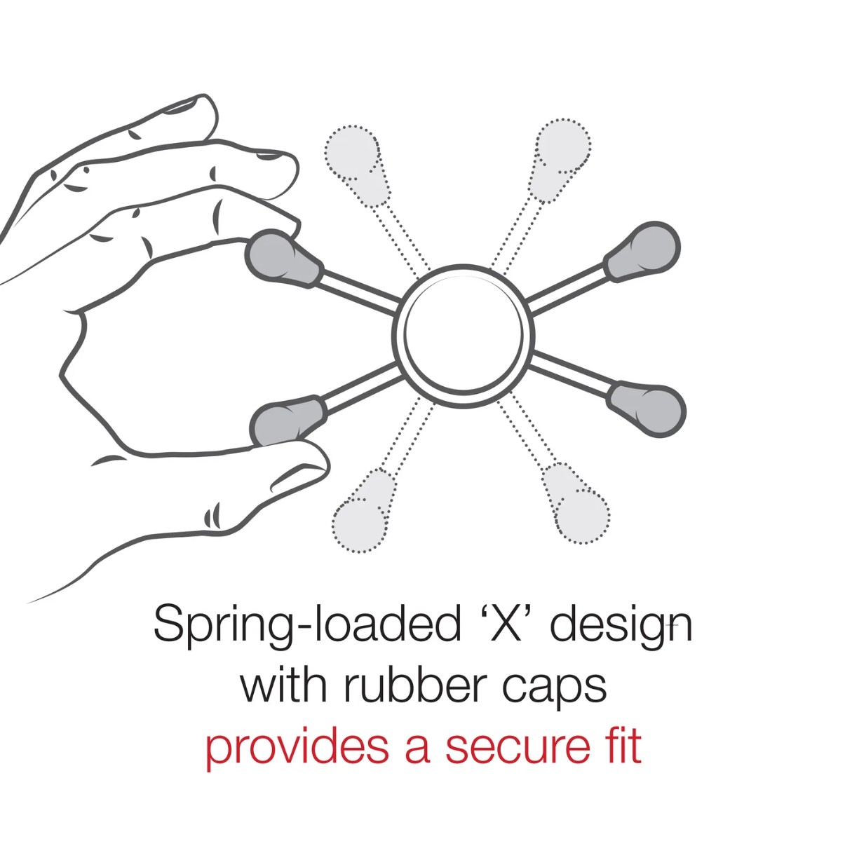 - Spring-loaded 'X' design for large phones with rubber caps sports great holding power without hiding your phone; includes optional device tether for peace of mind during rugged use