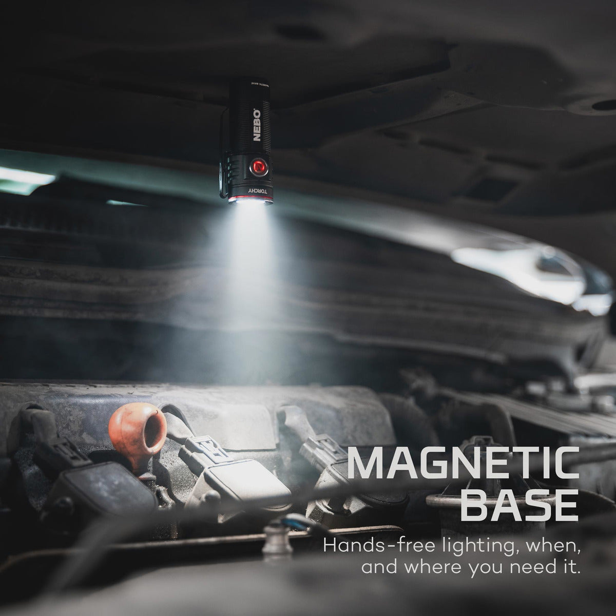 The Torchy is a super bright LED rechargeable pocket flashlight loaded with features that make it as versatile as it is powerful. The Torchy pocket flashlight features five light modes and Smart Power Control, which allows it to seamlessly transition through the different modes. Take advantage of quick bursts of ultra-bright 1,000 lumen blasts in Turbo mode, High mode (500 lumens), Medium mode (200 lumens), Low mode (50 lumens), or Strobe mode (500 lumens). Depending on mode, you can get up to 6 hours of continuous use between charges. The powerful magnetic base gives you hands-free lighting and it doubles as the magnetic charging port for the included USB MagCable. The removable clip provides easy carry or hands-free use as a cap light.